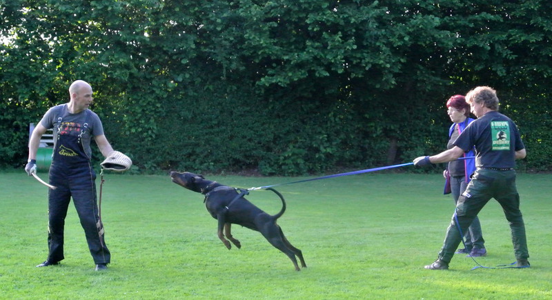 Ramsey zeichnet sich zudem durch dobermanntypisches Temperament aus: Vom Spielen und Toben kann sie kaum genug bekommen. Auf dem Hundeplatz zeigt sich Ramsey bereits sehr arbeitswillig und gelehrig. Wie es für ihre Rasse typisch ist, fordert sie von uns sowohl körperliche wie geistige Auslastung. Arbeit und Spiel bereiten uns deshalb mit ihr besondere Freude.