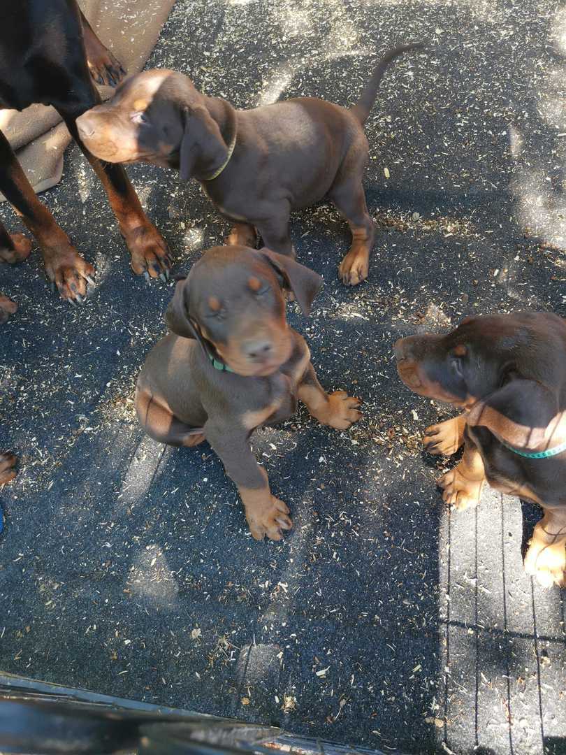 Es sind sechs Welpen - drei Rüden, drei Hündinnen. Der gesamte Wurf ist braun.